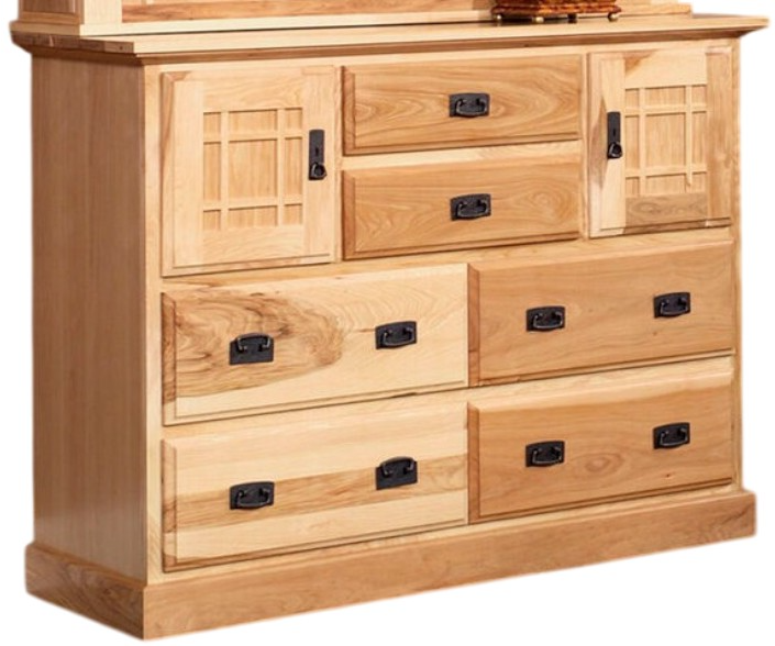 Beautiful modern arts and crafts fret work that transitions well into any home. The unique & natural solid Hickory wood grain shines through with mineral streaks, brown cathedral points and rich reddish brown grain patters. Hickory is a high density wood that is extremely resilient to surface damages and is as smooth as glass with our Catalyzed Lacquer finish. This furniture is guaranteed to become tomorrow’s heirloom