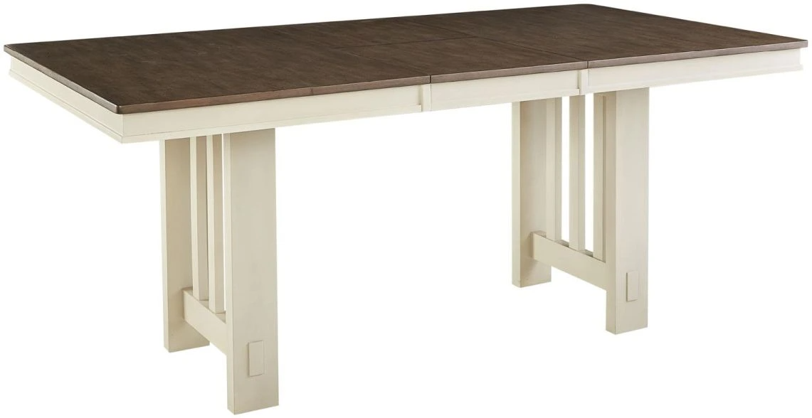 The Bremerton collection brings a timeless style and casual spin to the dining room. Featuring equalizing cable glides for effortless table top extension on a sturdy trestle base. A soft two-tone finish of oyster white capped by saddle dust gray completes the collection for an updated farmhouse look and feel.Read More