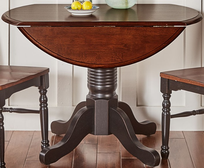 The A-America® British Isles dining table with black base is made from solid hardwood and features a rich merlot top with extending table for flexible seating. The black base adds contrast while the compact design makes it ideal for smaller dining spaces.Read More