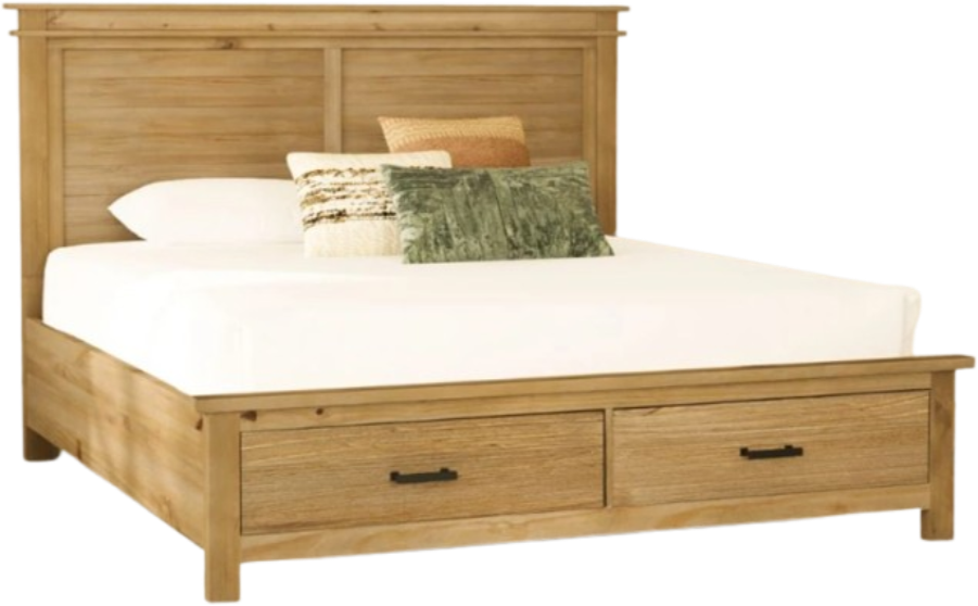 The A-America® Glacier Point Golden Java California King Panel Storage Bed blends rustic elegance with modern function. Crafted from solid pine in a warm golden java finish, it features a sleek panel headboard and built-in footboard storage, creating a stylish and practical bedroom centerpiece.Read More