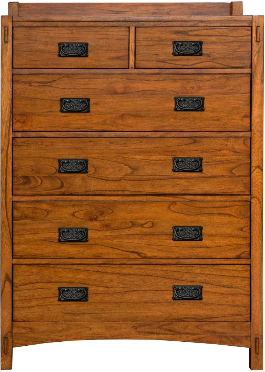 The simple, sturdy vertical lines of our Mission Hill bedroom speak to the motifs of the Arts & Crafts design movement, ornamented mainly by the grain of the wood, the joinery and the hardware. Although the mortise and tenon joinery and closely spaced long wooden slats are reminiscent of the related mission furniture style and offer a classically traditional aesthetic, the simple silhouette caters to a living style and philosophy that can make any home more satisfying, comfortable and beautiful. Features classic craftsman hardware that emulates a hand forged hammer tone texture in an oil-rubbed bronze finish.
