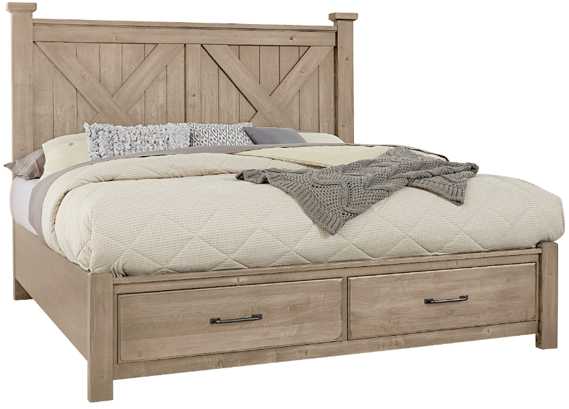 Give your bedroom the rustic charm you've been dreaming of with this solid wood bed. The X headboard provide an iconic look that creates an inviting atmosphere you'll relish coming home to night after night. Two drawers in the footboard of the bed offer up plenty of convenient storage for extra bedding.Read More