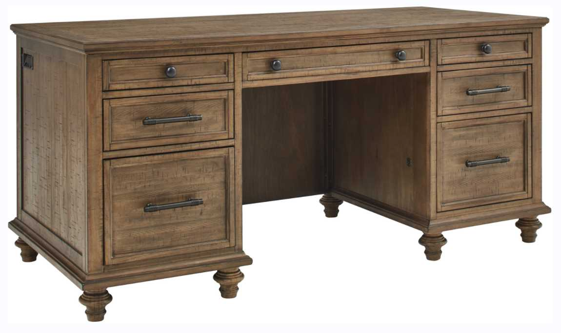 Hensley offers a classic, transitional style in a warm honey finish with beautiful aged brass finish hardware. Enjoy functional features throughout such as built-in AC & USB outlets, drop front drawers, adjustable height controls, removable dividers, locking file drawers, generous storage, cord management and so much more.Read More