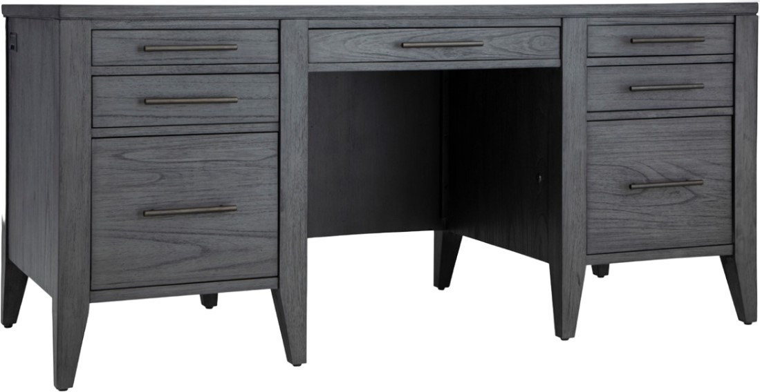 Preston offers a clean, transitional style in a gorgeous urbane gray finish with generously sized contemporary bar pull hardware. Enjoy functional features throughout such as built-in AC & USB outlets, drop front drawers, lifting desktops, tablet holders, locking file drawers, cord management and so much more.Read More