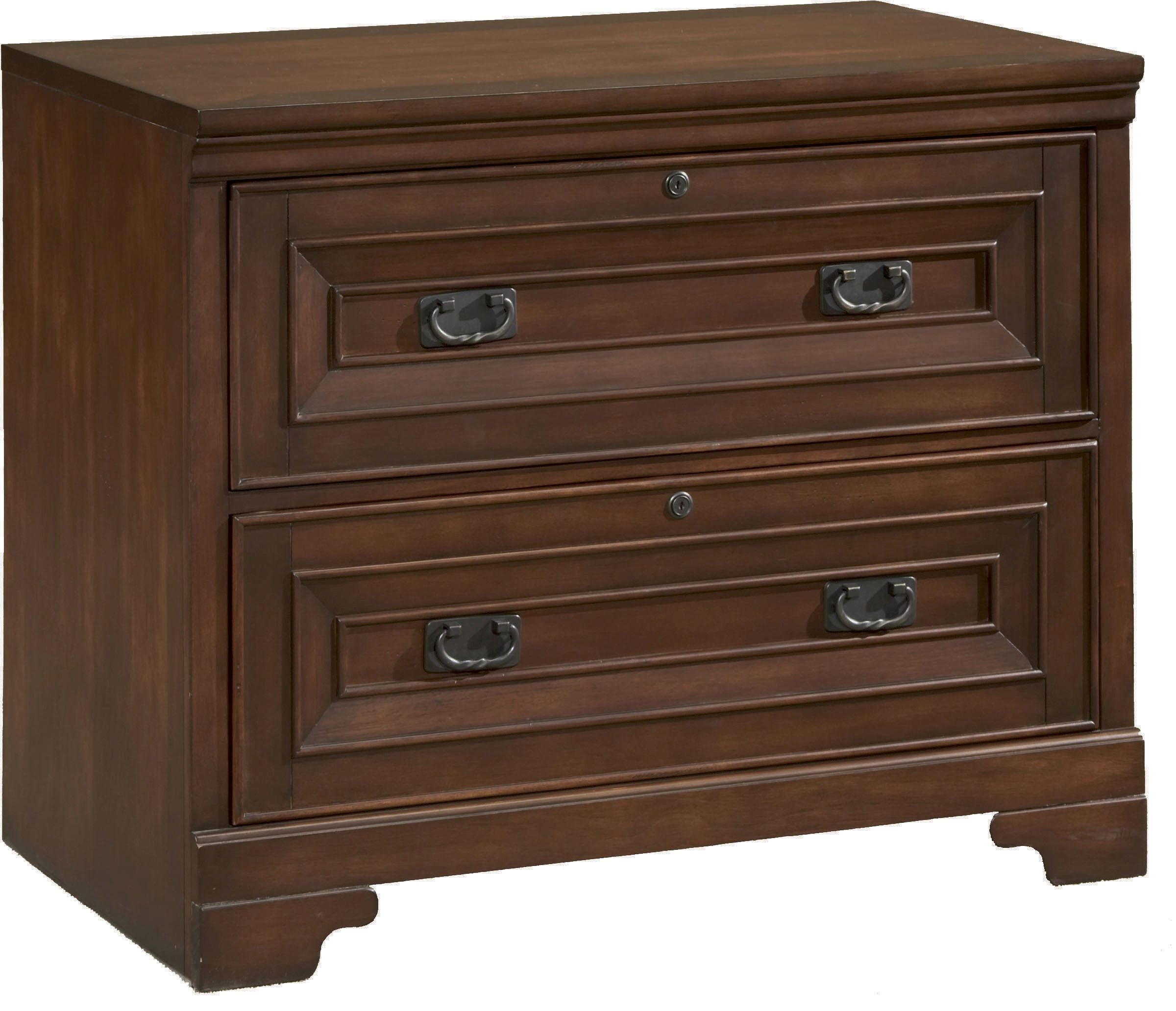Inspired by the best traditional looks, the Richmond collection is stunning yet elegant fit in any home. Lateral File Cabinet with 2 locking file drawers and warm burgundy finsihRead More