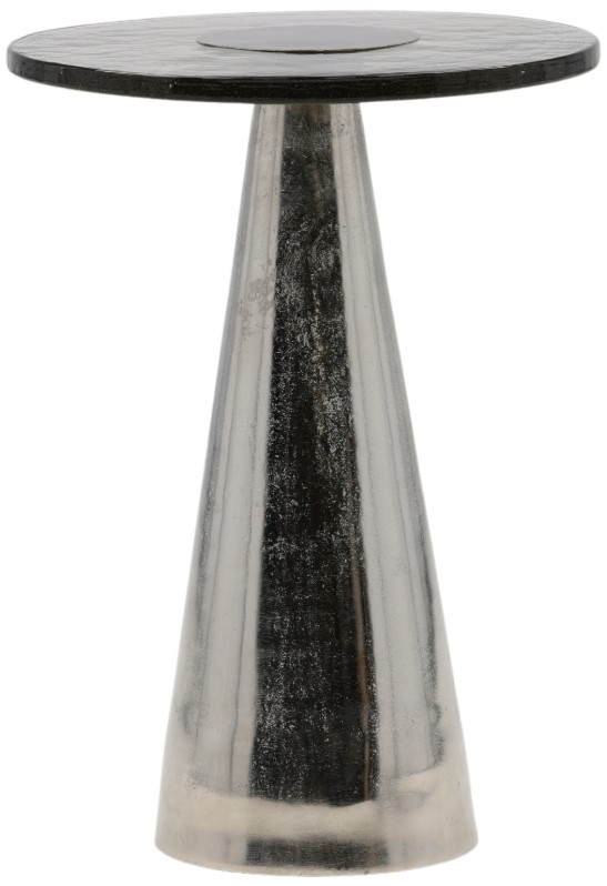 The Alaric end table features a round glass top paired with a sturdy silver cone-shaped base. Its surface offers a clean look while providing space for decorative items or daily use. This table combines practicality and visual interest, making it a useful accent in any room.Read More