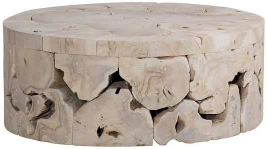 Crafted from reclaimed teak slabs with a bleached finish, each bench is uniquely pieced together like a puzzle by artisans. No two are alike, showcasing exquisite craftsmanship. Measuring 39” in diameter, this round coffee table perfectly complements any living room or sitting area with its unique design and natural charm.Read More