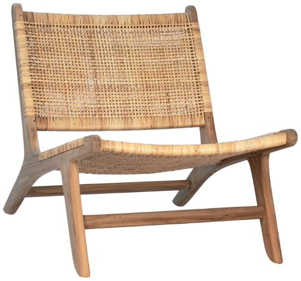 Clean lines and solid teak wood construction wrapped around in a meticulously crafted handwoven rattan. This occasional chair will bring some serious style to your space. Works beautifully as a living room lounge chair, sculptural statement chair, or as a corner chair. Style it as a standalone piece or in a pair.Read More