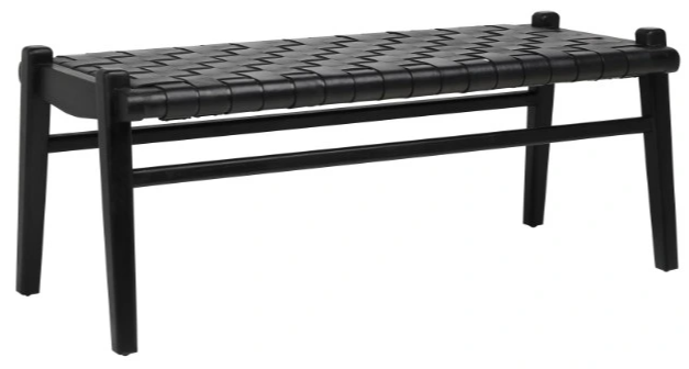 Wide straps of full-grain leather are woven around a sleek teak wood frame. Featuring a streamlined silhouette, our backless bench makes for a beautiful statement piece at the foot of a bed or in an entry hallway.Read More