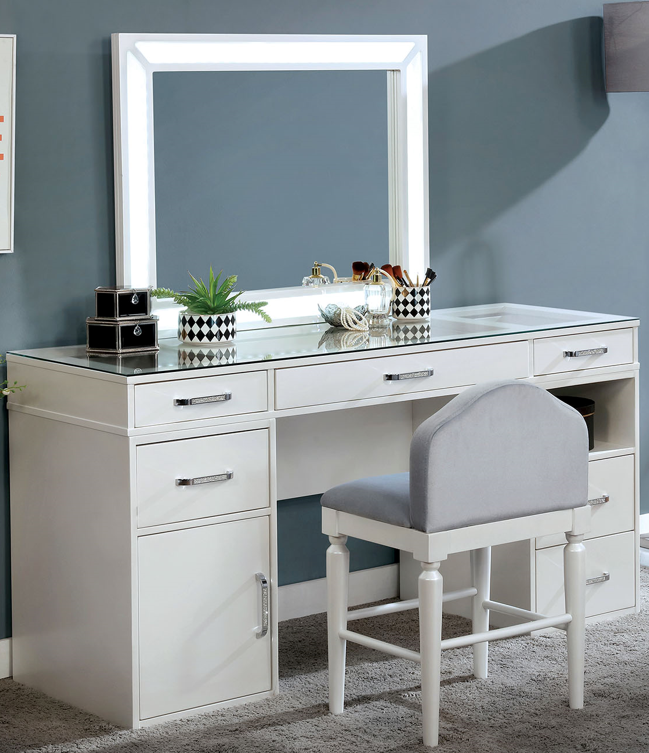 It's a gorgeous illuminated set. A beauty station that provides the right amount of space. With a multitude of drawers, the inclusion of a cabinet and open shelf make this an ideal setting for any preparing for a night on the town.Read More