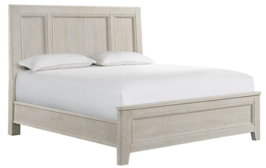 Carlson Bedroom offers transitional style blended with the casual nature of lightly wire brushed spruce solids and veneer. This larger scale group features thick solid wood tops, chamfered front posts, framed drawer, and door accents in a comfortable Washed Linen finishRead More