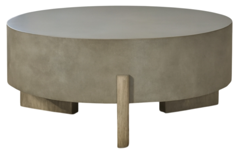 Feel at home with the Affinity round cocktail table. Crafted with excellence using Acacia solids and Quartered White Oak veneers, this table features a faux concrete top and rounded oblong legs in a Dusty Taupe finish.Read More