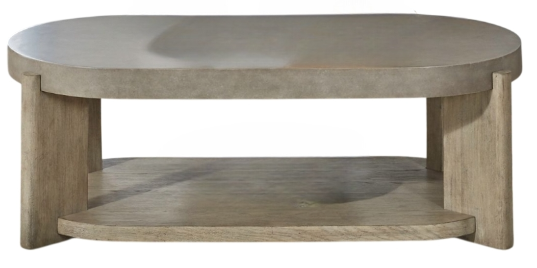 Feel at home with the Affinity oval cocktail table. Crafted with excellence using Rubberwood solids and Quartered White Oak veneers, this table features a faux concrete top and rounded oblong legs in a Dusty Taupe finish.Read More