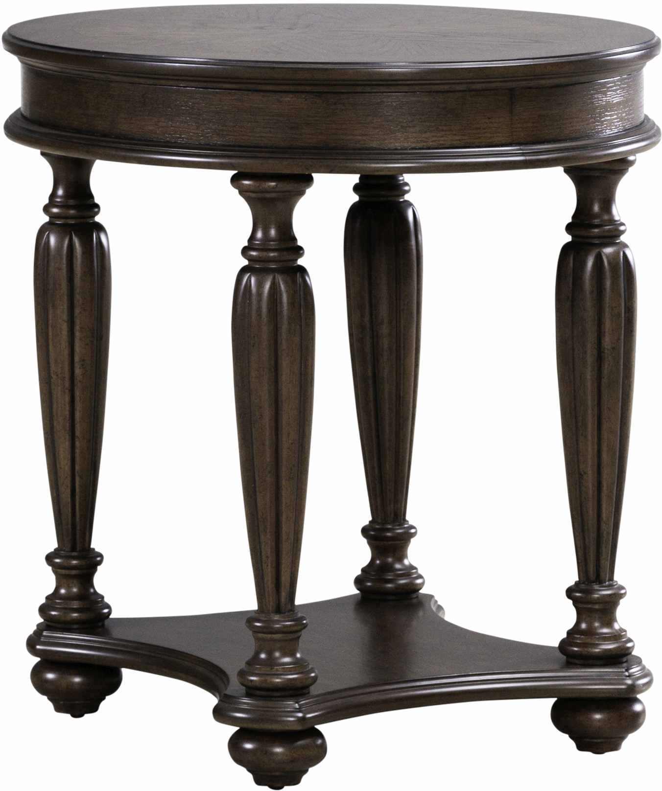 Round end table with reeded turned pedestal