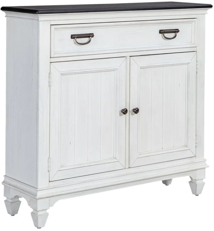 Elevate your space with the Allyson Park 42 inch hall console. Crafted of pine solids with white oak veneers, this piece features a wirebrushed white finish with a charcoal top, one full extension drawer and two doors with an adjustable shelf for additional storage.Read More