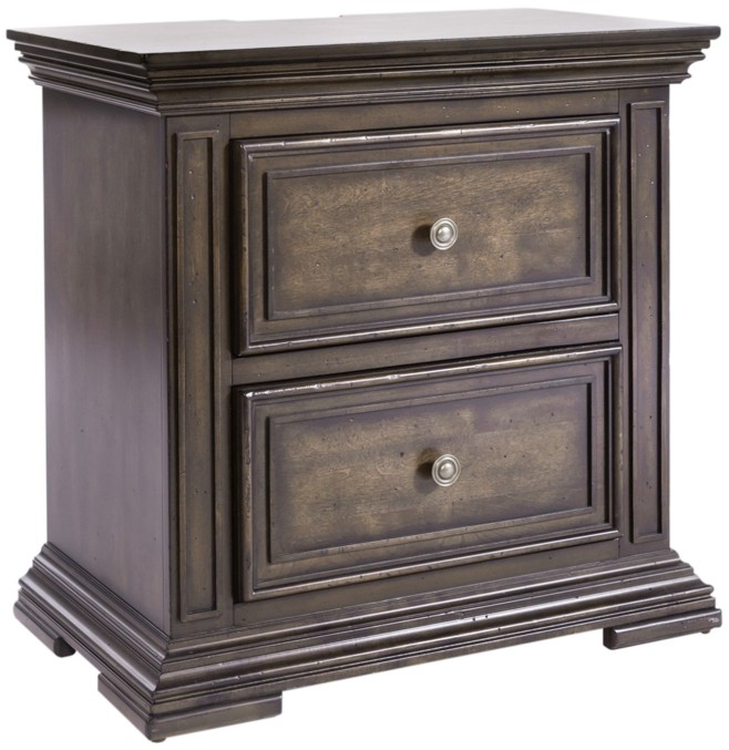 This unique night stand is the perfect way to accent your room with traditional living design. The brownstone finish accompanied by heavy distressing creates a truly unique look. This night stand features fully stained interior drawers, premium felt lined top drawers and bottom case proofing, tied together effortlessly with antique pewter knob hardware.Read More