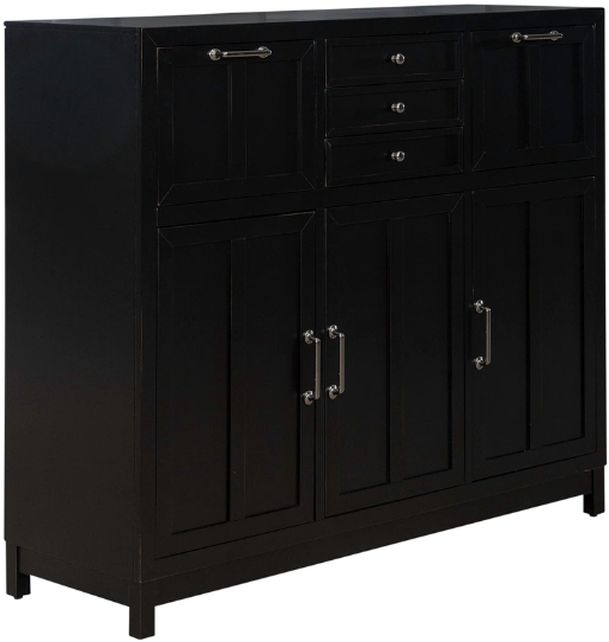 Forget the fancy restaurants and make your home the best place to dine with the Capeside Cottage buffet. Crafted with excellence using rubberwood solids and China maple veneers, this buffet features a Royal Black finish. The buffet has clean straight lines and features two deep full extension drawers flanking three smaller full extension drawers, all with wood framed drawer fronts and lined with felt.Read More