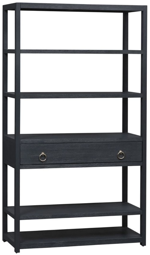 Turn your house into a home with the eclectic East End accent bookcase. Crafted of acacia solids and veneers, this piece features a wire brushed denim finish accented with brass ring hardware. This bookshelf offers six shelves for storage and display as well as a full extension drawer for additional storage.Read More
