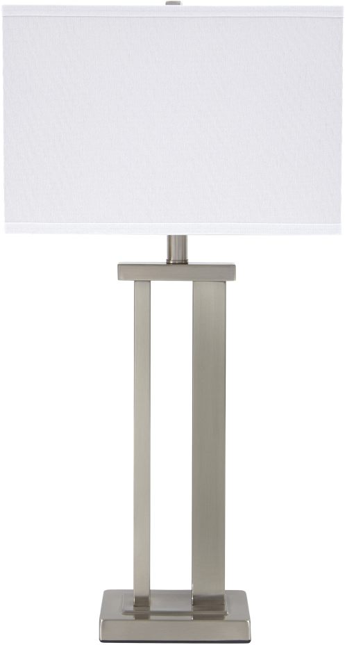 The Aniela Table Lamp Set shines with its sleek finish and clean, detailed lines. Made of metal with a fabric hardback shade, its versatile design complements nearly any space with effortless style.Read More