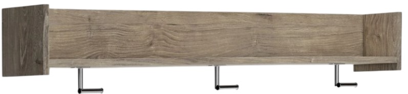 This stylish and versatile wall-mounted coat rack is an ideal addition to your entryway or mudroom. It features an open shelf for easy access or display. A dry, light finish with replicated oak grain is accented with three brushed nickel-tone hooks for hats and handbags. Wall mounting bracket included.Read More