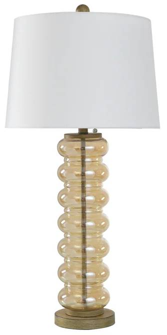 The table lamp features a stunning brown glass base, exuding sophistication. Equipped with a powerful 100-watt, it casts a warm, inviting glow. Its elegant design and high-quality craftsmanship make it a standout piece, seamlessly blending luxury and functionality for any space.Read More