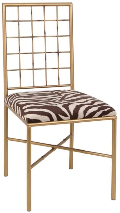 Metal chair with zebra cushion.