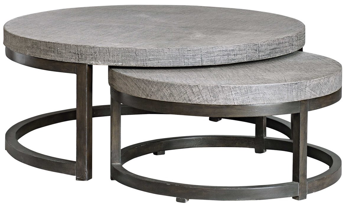 Offering versatile function with modern influences, this duo features burlap wrapped tops heavily glazed in a taupe wash, with solid hardwood bases finished in a hand rubbed black coffee.Read More