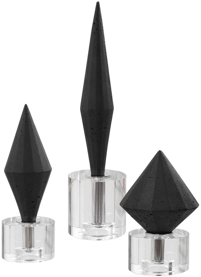 Elegant black diamonds made of granulated marble atop crystal bases.Read More