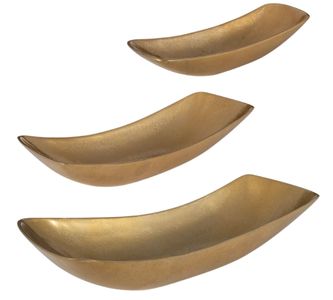 Set of three, textured cast aluminum bowls feature an antique brass finish.Read More