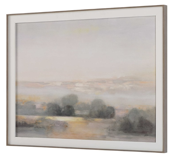Be transported into the timeless romance of the English countryside with Atmospheric Neutral. This captures the essence of rolling hills with a dreamy color palette. The print is accented by a thin light gray frame with wood grain detail and white linen liner. Artwork by Julia Purinton.Read More