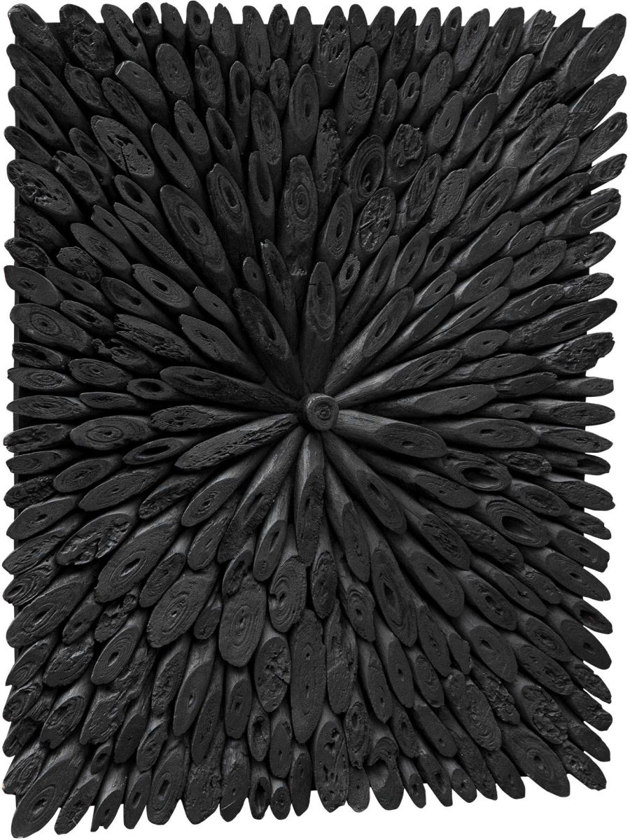 This wood wall panel is handcrafted from individually cut natural driftwood pieces in a rustic black finish, artfully arranged in a striking sunburst pattern. May be hung horizontal or vertical.Read More