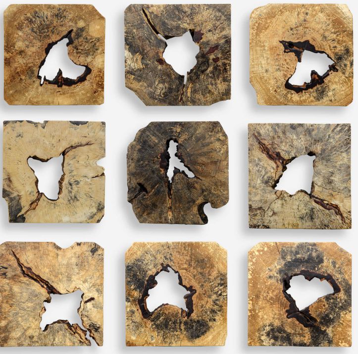 This set of nine wood wall pieces is crafted from 100% tamarind wood in a natural finish. Because each is individually handcrafted, natural variation will occur from piece to piece.Read More