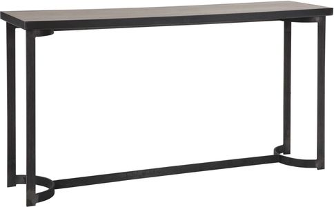 Evoking a modern lodge style, this clean lined console showcases a natural oak veneer top finished in a light gray, paired with a curved hand forged iron base in aged steel with natural burnishing.Read More