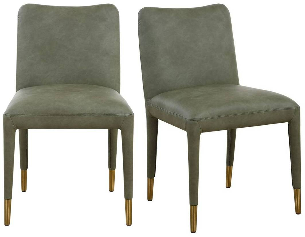 The Uttermost® Conifer 2-Piece Dining Side Chair Set features a plush seat in pine green distressed faux leather accented with brushed brass ferrules, perfect for modern dining room design.Read More