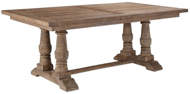 Beautifully pieced, solid wood table is made from 100% reclaimed lumber, sanded and minimally finished with a stony gray wash to highlight the natural grain and distressing.Read More