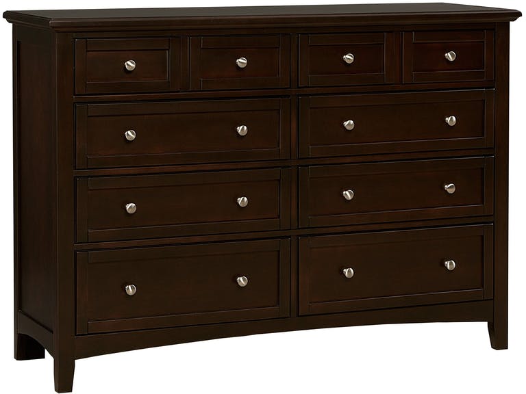 Made in the USA, this triple dresser with eight drawers offers casual style to any bedroom in your home. Its design elements with framed drawer fronts, tapered feet, and simple molding create a look that fits within contemporary to transitional space. The base rail is gently curved to add dimension to complete this dresser.Read More