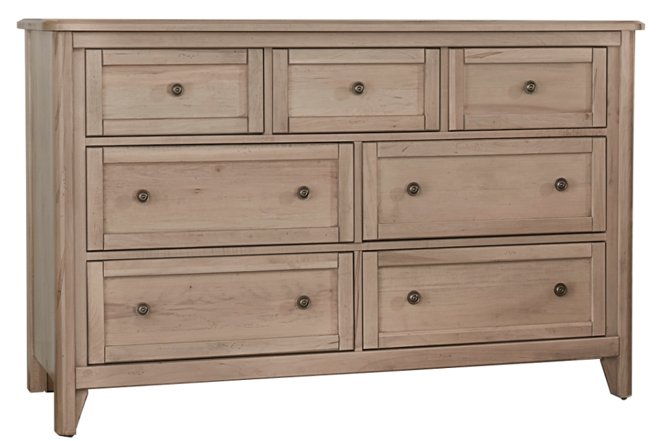 The Vaughan-Bassett Woodbridge Clear Maple 7-Drawer Dresser exudes elegance with its deep clear maple and classic design. Featuring seven spacious drawers, it combines style and ample storage for any bedroom.Read More